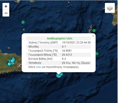 Σεισμός σημειώθηκε πριν από λίγο στην Κρήτη. Σύμφωνα με την Αυτόματη Λύση του Γεωδυναμικού Ινστιτούτου Αθηνών ο σεισμός είχε μέγεθος 4,1 Ρίχτερ.