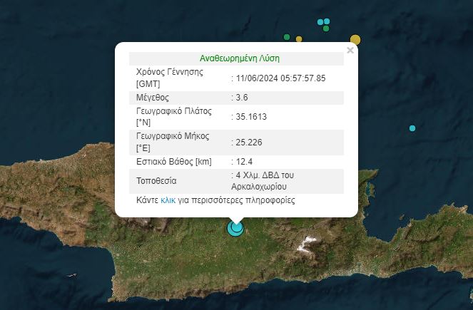 Διπλή σεισμική δόνηση σημειώθηκε το πρωί της Τρίτης (11/06) με επίκεντρο το Αρκαλοχώρι της Κρήτης.