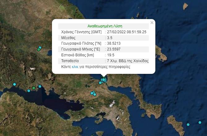 Σύμφωνα με το Γεωδυναμικό Ινστιτούτο Αθηνών, ο σεισμός σημειώθηκε στις 10:51 και είχε μέγεθος 3,5 Ρίχτερ. Το επίκεντρο του σεισμού καταγράφεται 7 χλμ. βόρεια και βορειοδυτικά της Χαλκίδας, ενώ το εστιακό βάθος ήταν στα 19,5χλμ.