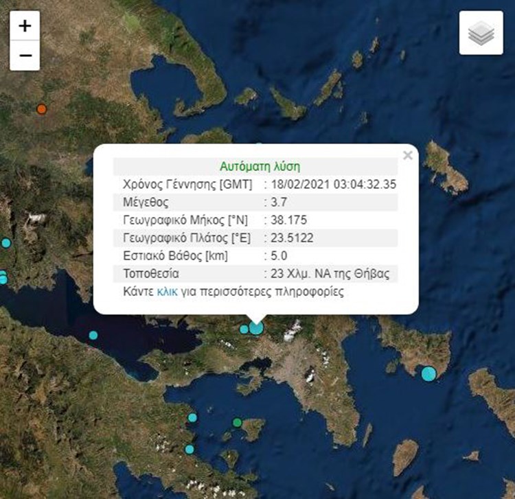 Η δόνηση είχε εστιακό βάθος 5 χλμ. και επίκεντρο που εντοπίζεται στα 23 χλμ. νοτιοανατολικά της Θήβας.