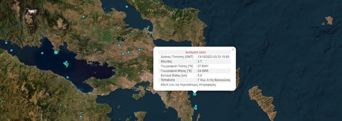 Σύμφωνα με το Γεωδυναμικό Ινστιτούτο το επίκεντρο της δόνησης εντοπίζεται 7 χλμ ανατολικά της Βραυρώνας με το εστιακό βάθος να υπολογίζεται στα 5 χλμ.