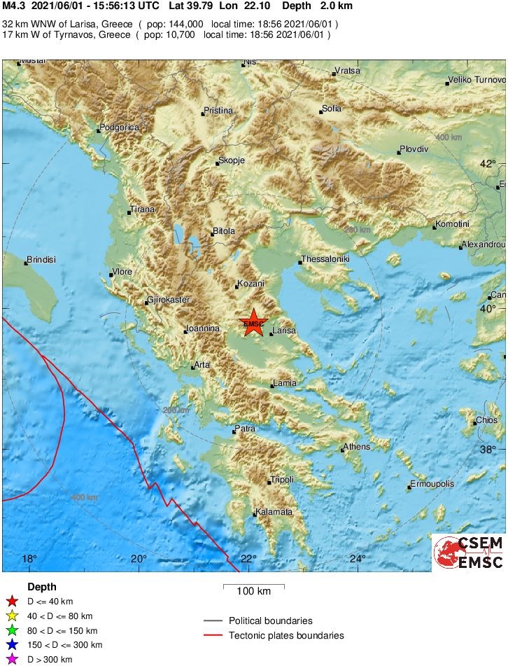 Σύμφωνα με το Ευρωμεσογειακό, ο σεισμός είχε μέγεθος 4,3 βαθμών.