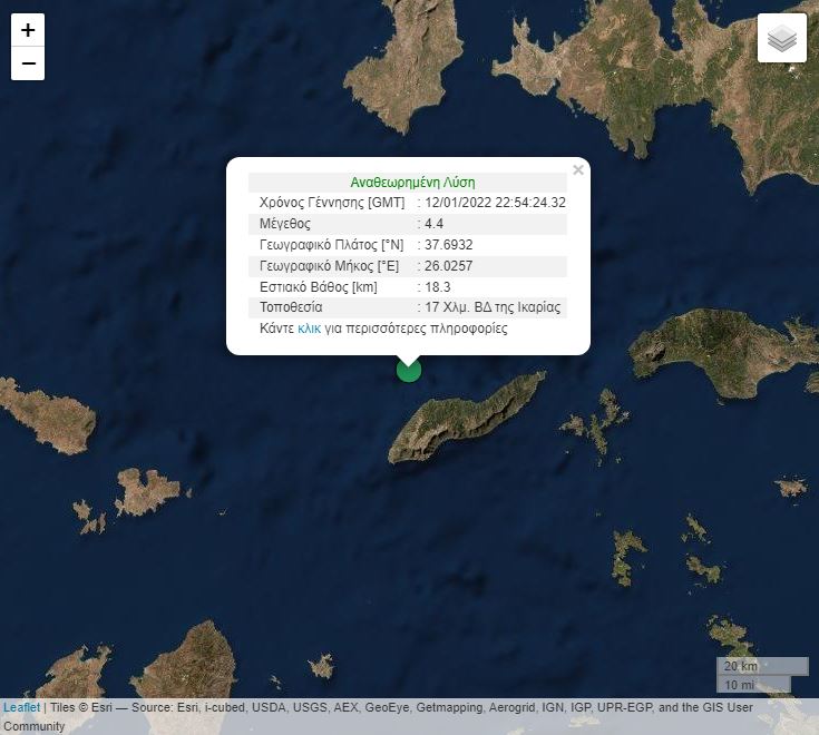 Σεισμός μεγέθους 4,4 βαθμών της κλίμακας Ρίχτερ σημειώθηκε στις 00.54, στα Δωδεκάνησα, σε θαλάσσιο χώρο κοντά στην Ικαρία.