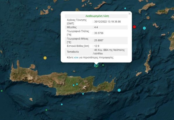 Σεισμός σημειώθηκε πριν από λίγο στη θαλάσσια περιοχή της Κρήτης.