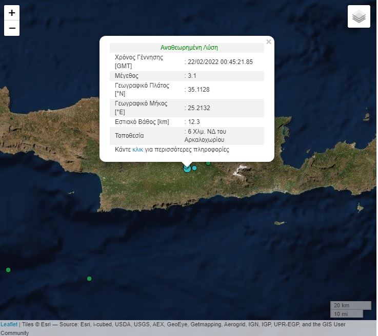 Σεισμός μεγέθους 3,1 βαθμών της κλίμακας Ρίχτερ σημειώθηκε στις 02:45 τα ξημερώματα της Τρίτης, στην Κρήτη.