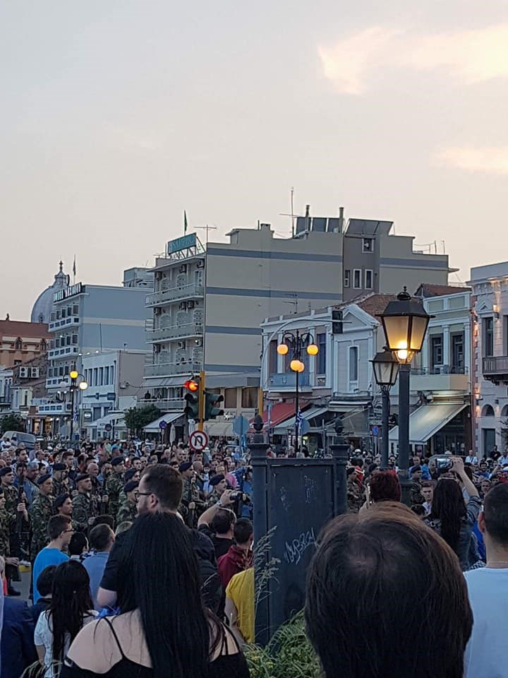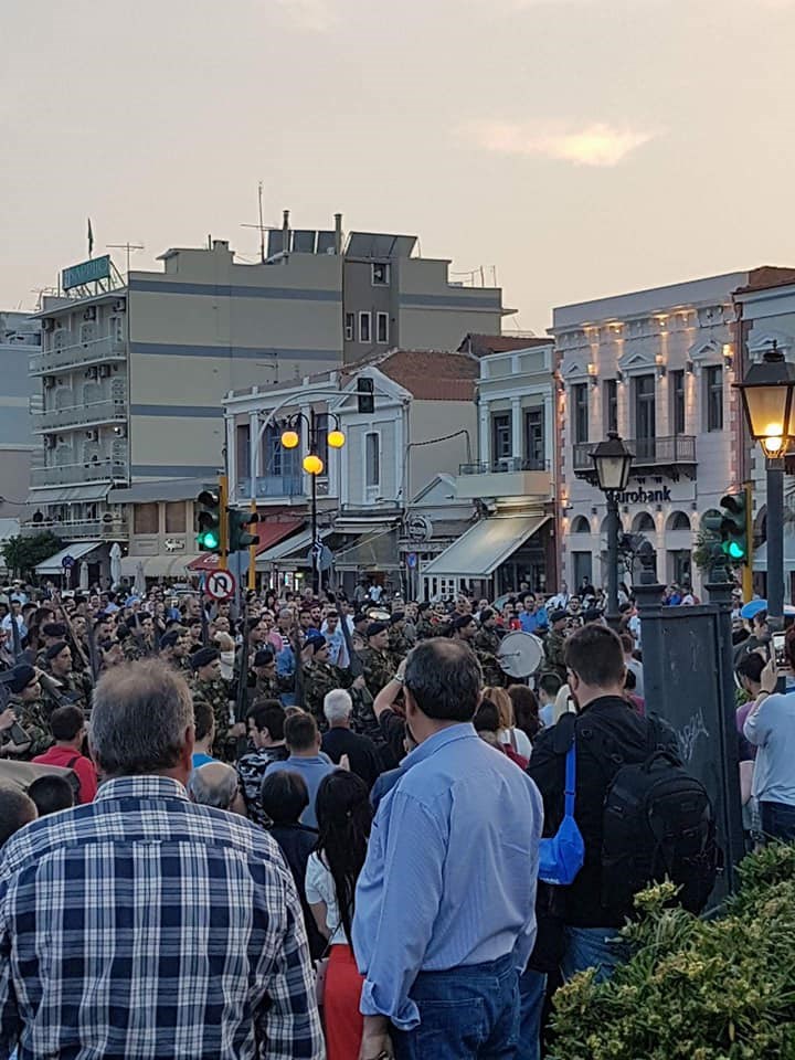 Ο κόσμος από τις 18:00 άρχισε να μαζεύεται δημιουργώντας ατμόσφαιρα «παρέλασης» στην προκυμαία Μυτιλήνης και μόλις το άγημα έκανε την εμφάνιση του όλοι μαζί με ένα αυθόρμητο χειροκρότημα και την ιαχή «Ελλάς- Ελλάς» υποδέχτηκαν τους φαντάρους και την μπάντα της 98 ΑΔΤΕ.