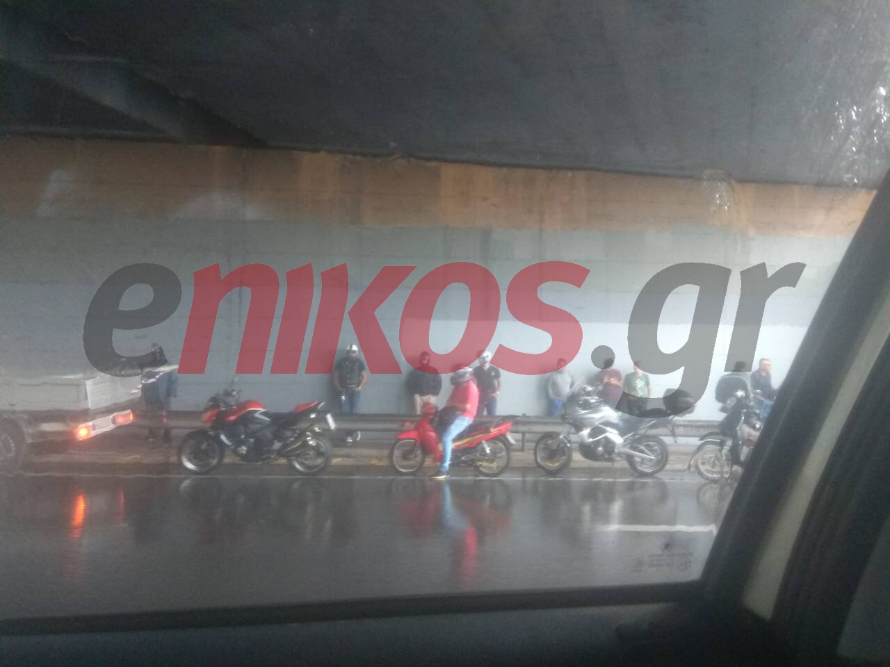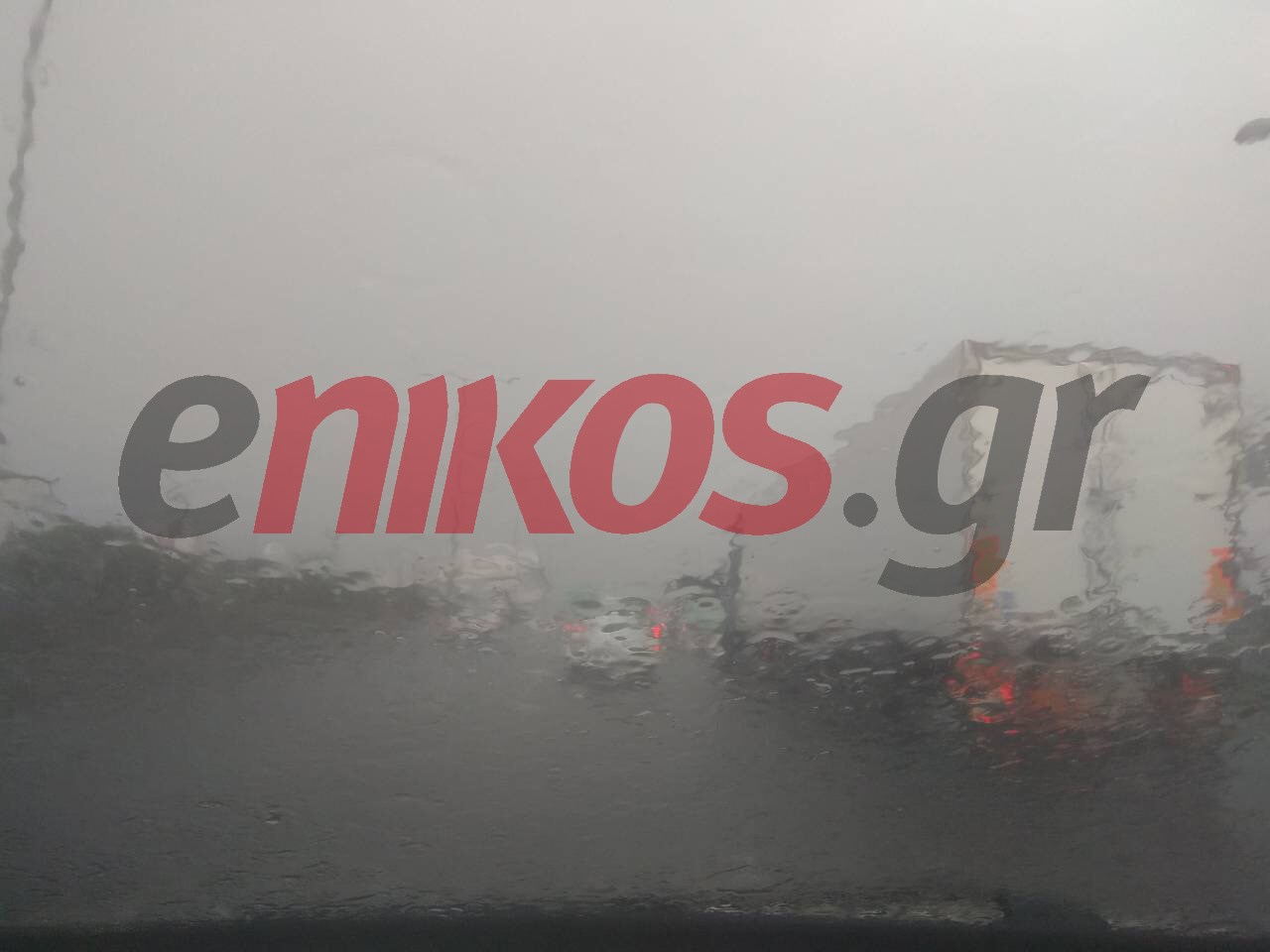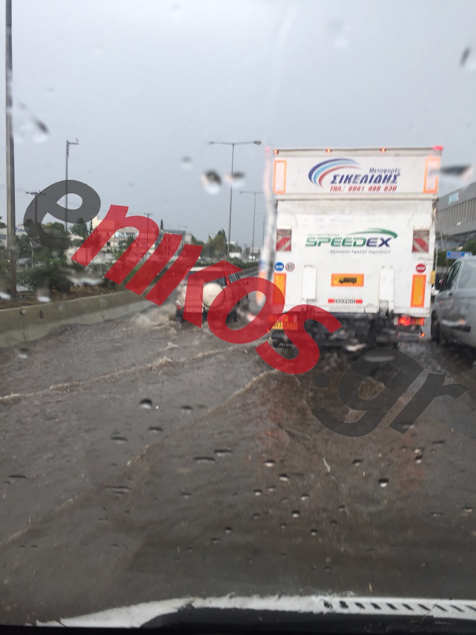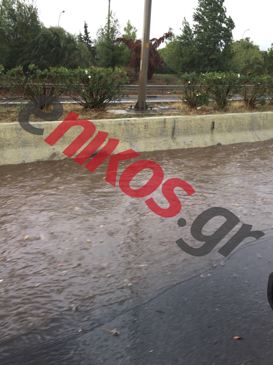 Επίσης, ακινητοποιημένοι παρέμειναν οι οδηγοί στην Εθνική στο ύψος της Λυκόβρυσης, καθώς στο σημείο ο δρόμος μετατράπηκε σε χείμαρρο, όπως φαίνεται σε φωτό αναγνώστη.