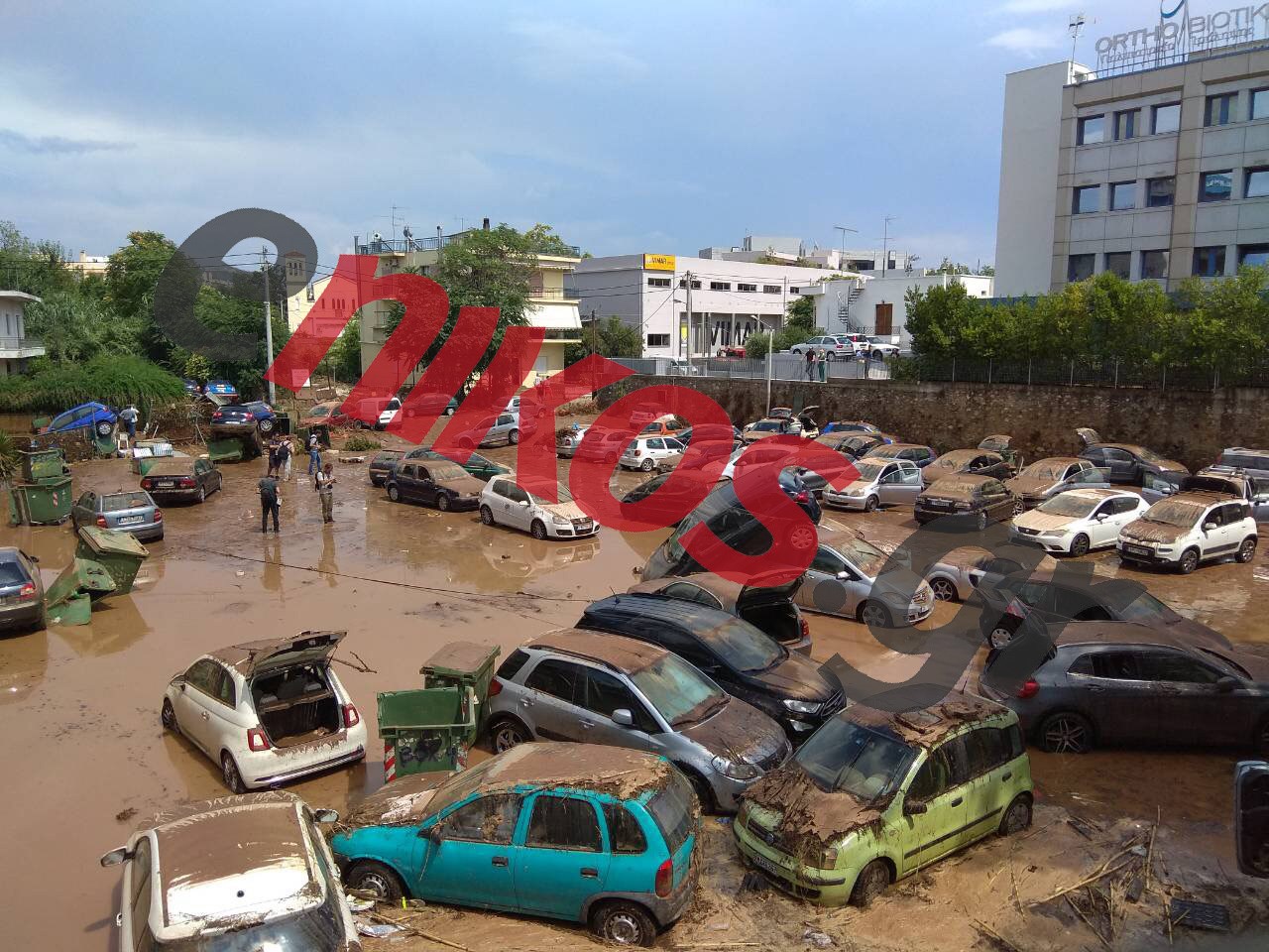 Βουτηγμένα στα λασπόνερα τα αυτοκίνητα σε υπαίθριο πάρκινγκ στο Μαρούσι – ΦΩΤΟ αναγνώστη