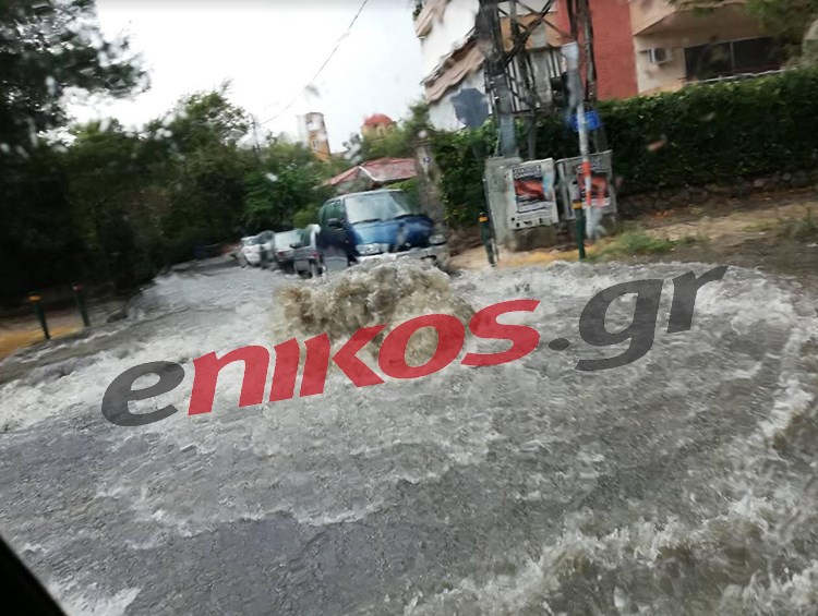 Σε ποτάμι μετατράπηκεη Λεωφόρος Πεντέλης στο Χαλάνδρι εξαιτίας της ισχυρής καταιγίδας.