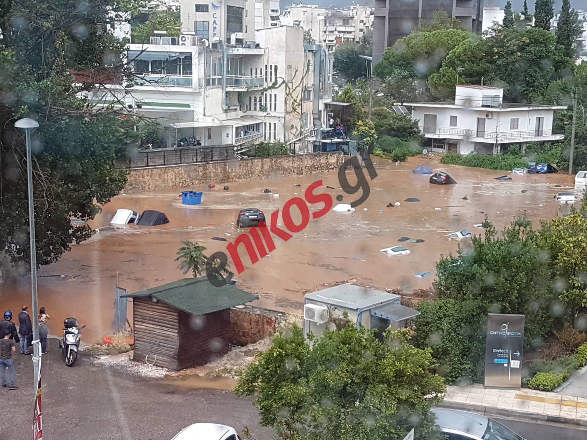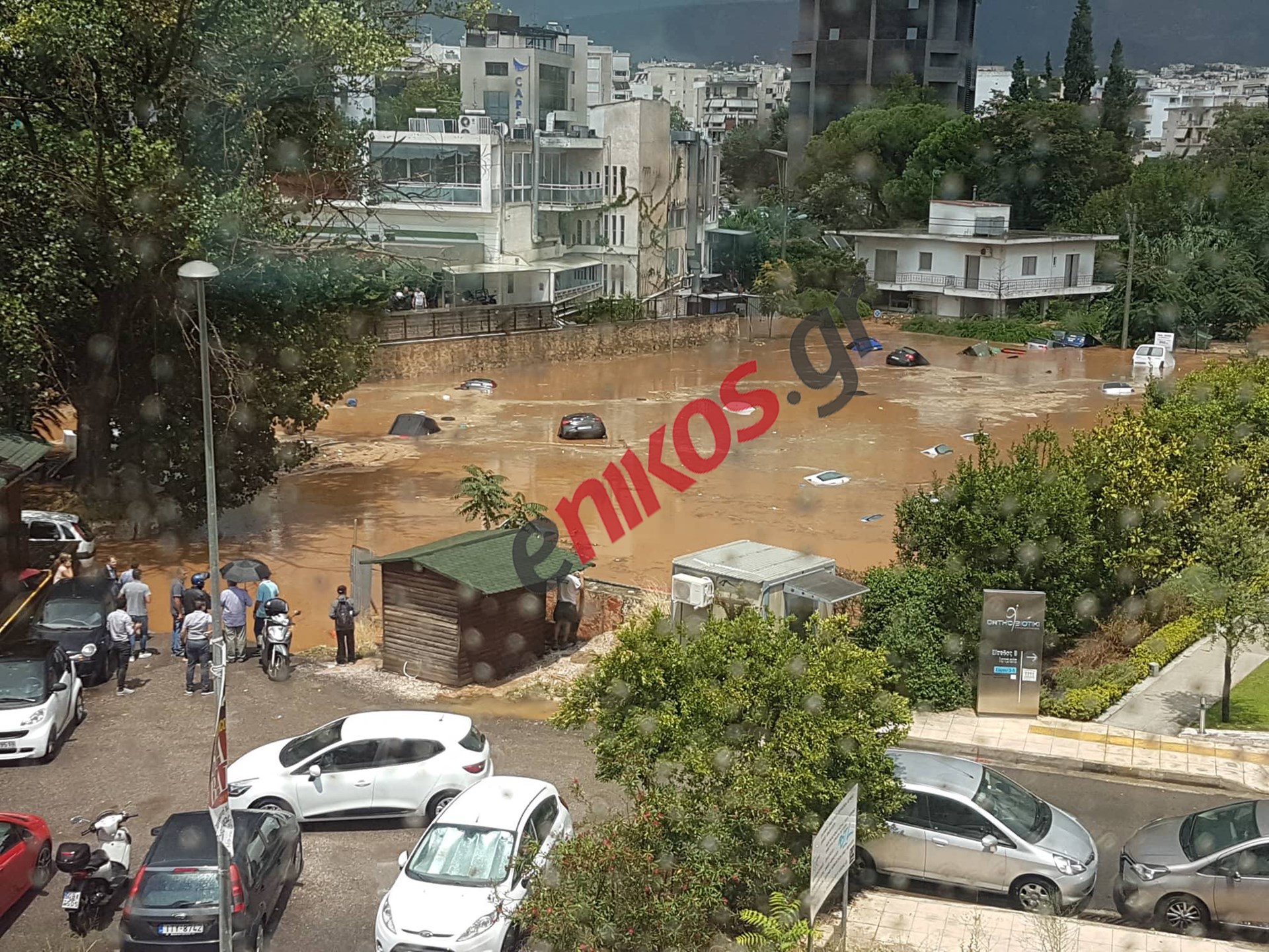 Σοκαριστικές είναι οι εικόνες από το υπαίθριο πάρκιγνκ στο Μαρούσι όπου τα αυτοκίνητα “πνίγηκαν” στα ορμητικά νερά της βροχής.
