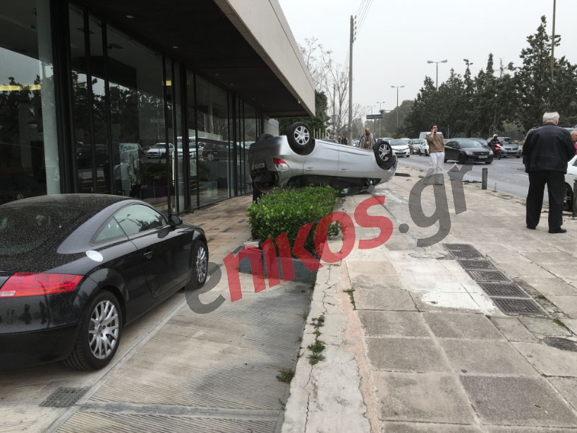 Σφοδρή σύγκρουση δύο οχημάτων στην κάθοδο της Λεωφόρου Κηφισίας, που είχε ως αποτέλεσμα το ένα όχημα να ντεραπάρει.