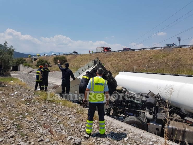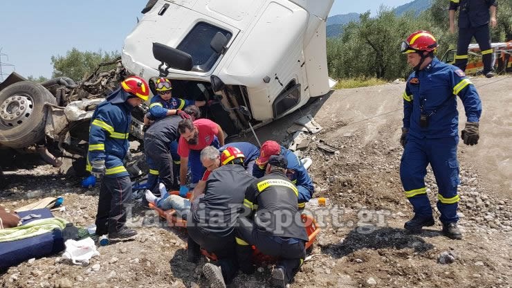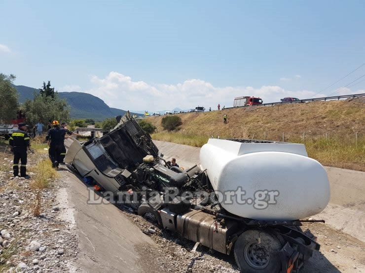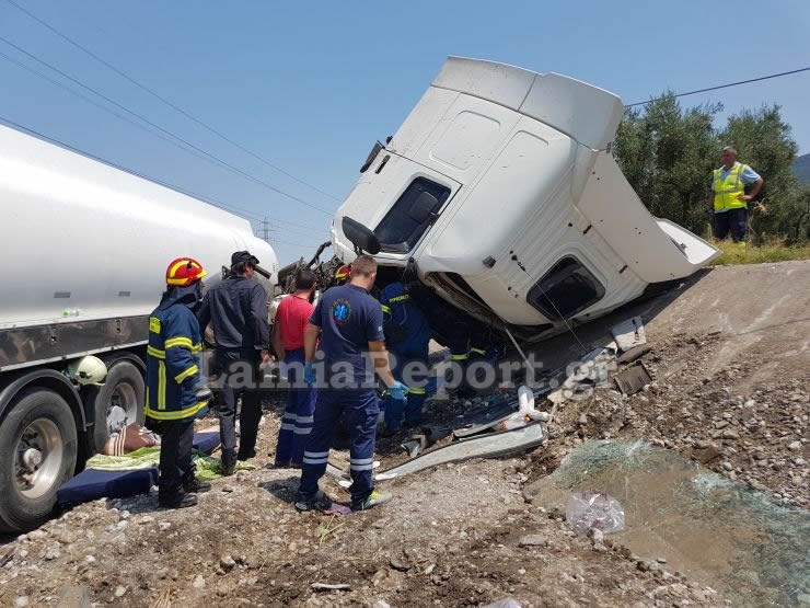 Ο οδηγός του βυτιοφόρου εγκλωβίστηκε μέσα στην καμπίνα και χρειάστηκε η επέμβαση της 7ης ΕΜΑΚ και των πυροσβεστών της Π.Υ. Λαμίας για να απεγκλωβιστεί, βαριά τραυματισμένος.
