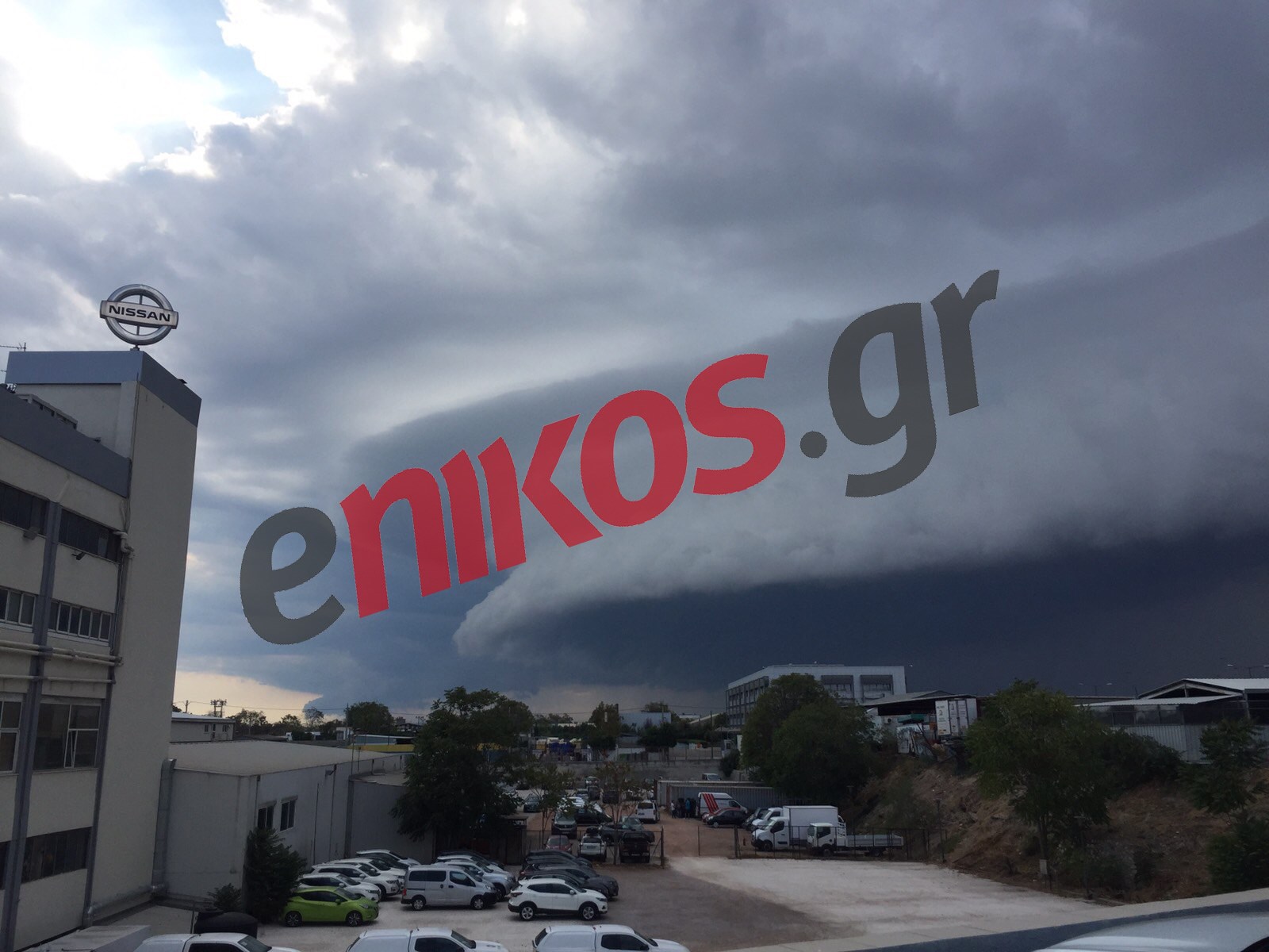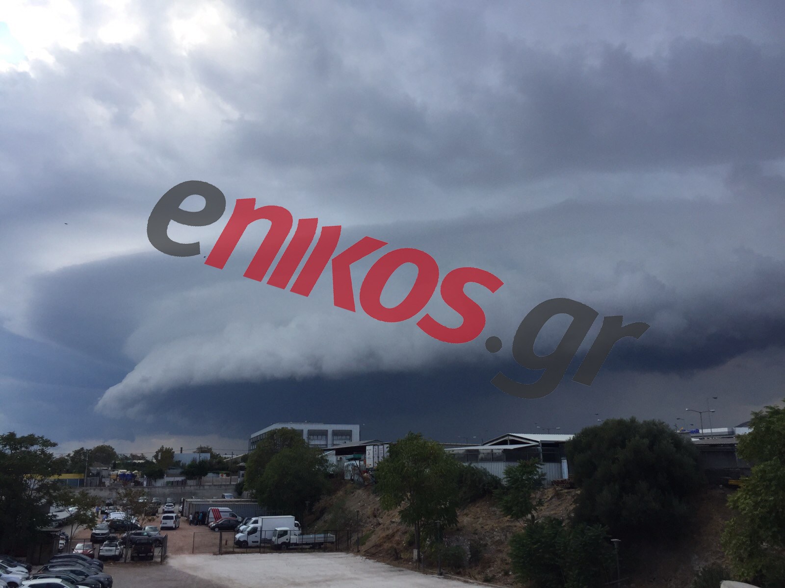Ένα shelf cloud σχηματίστηκε στον ουρανό λίγο πριν ξεσπάσει η ισχυρή καταιγίδα στην Αττική. Πρόκειται ένα τεράστιο καταιγιδοφόρο σύννεφο που μοιάζει να “καταπίνει” το λεκανοπέδιο.Σύμφωνα με τον μετεωρολόγο του Realfm Παναγιώτη Γιαννόπουλο, ουσιαστικά, το shelf cloud αποτελεί το όριο ανάμεσα στο καθοδικό και ανοδικό ρεύμα της καταιγίδας. Πρόκειται για σπάνιο – για την Αττική τουλάχιστον- φαινόμενο και γι΄αυτό όσοι το είδαν έσπευσαν να το καταγράψουν.