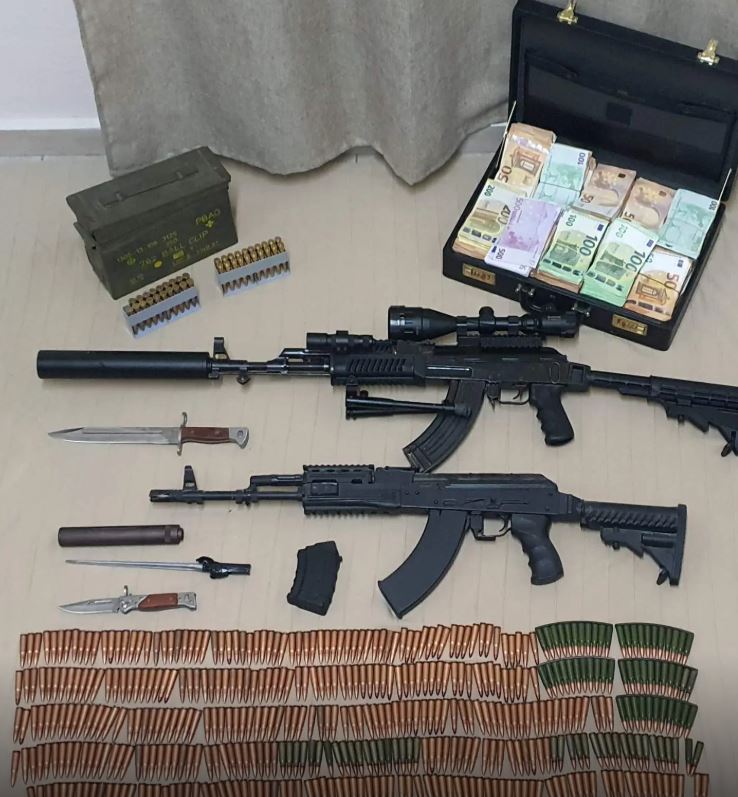 - Πολεμικό τυφέκιο τύπου «KALASHNIKOV» με 2 γεμιστήρες σε ειδικά διαμορφωμένη κρύπτη (καβάτζα)
