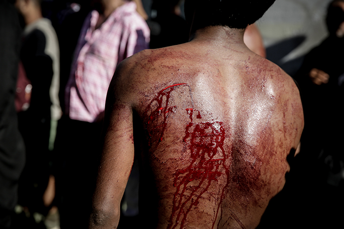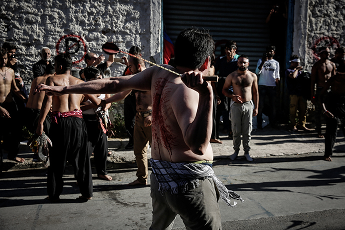 Χαρακτηριστικό της τελετής είναι το αυτομαστίγωμα που επιχειρούν οι πιστοί μουσουλμάνοι προς τιμήν του εγγονού του προφήτη τους.