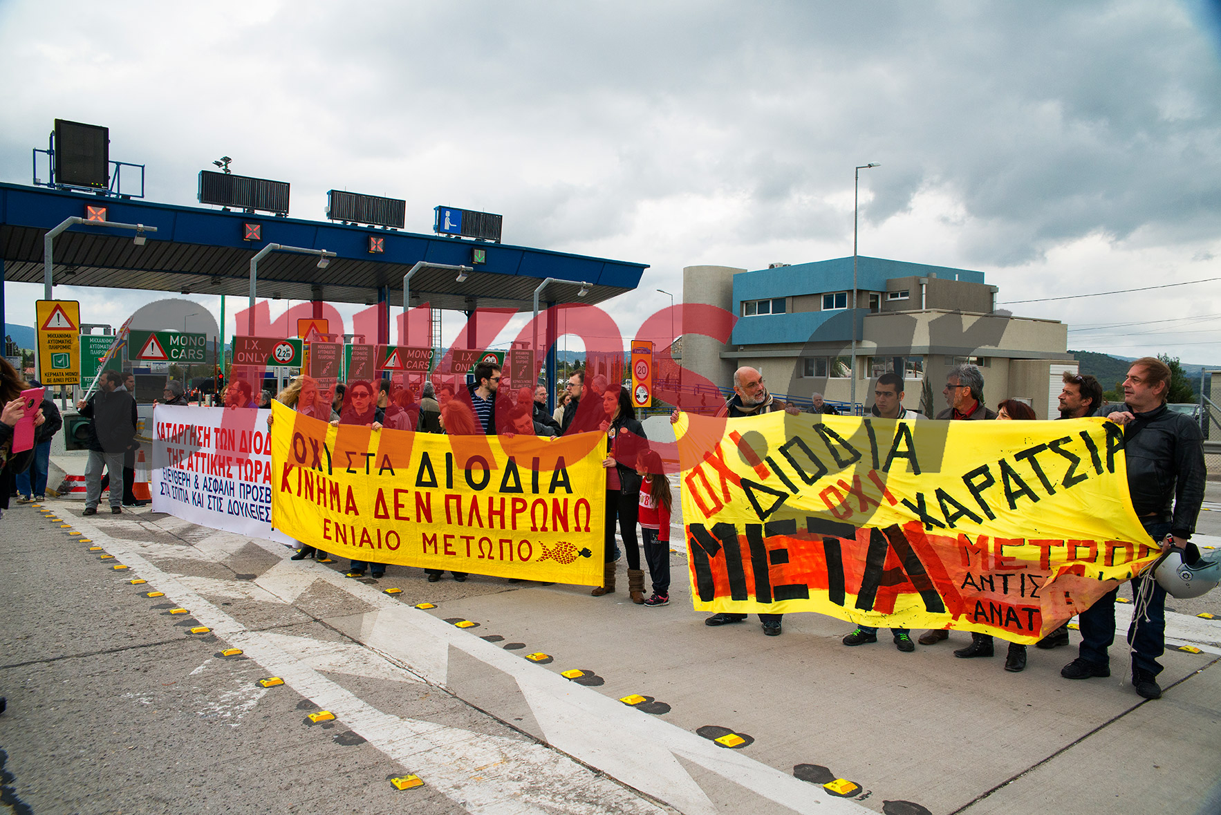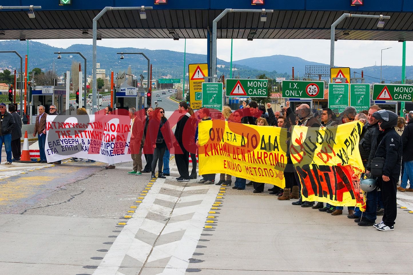 Από τις 12 το μεσημέρι και για ένα δίωρο άνοιξαν τα διόδια των Αφιδνών τα μέλη της «Συντονιστικής Επιτροπής Φορέων και κατοίκων Β.Α. Αττικής».