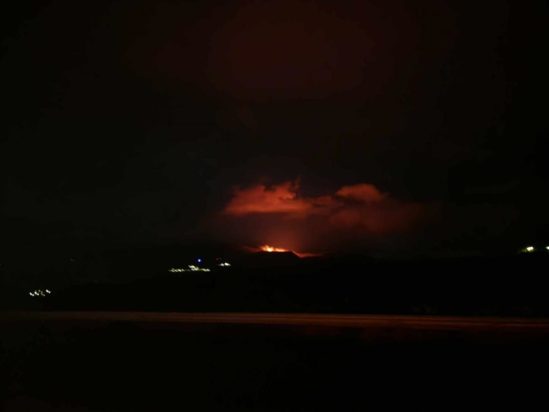 Στην περιοχή πνέουν ισχυροί άνεμοι που δυσκολεύουν την προσπάθεια κατάσβεσης.