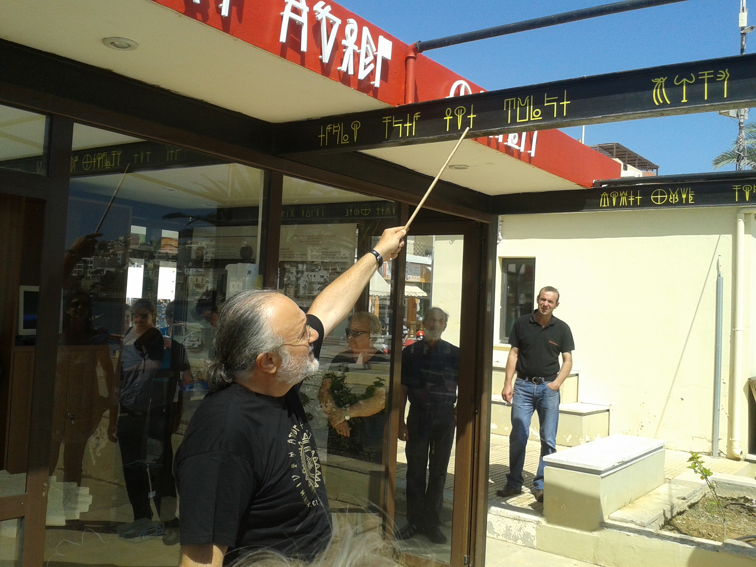 Στον ίδιο χώρο εκτίθενται α��τίγραφα τηγανόσχημων αγγείων από την Αγία Φωτιά Σητείας, που χρονολογούνται το 2.700 πΧ και απεικονίζουν συνοδικές κινήσεις πλανητών. Τα τηγανόσχημα αγγεία θεωρείται ότι χρησιμοποιούνταν ως ημερολόγια και με τη βοήθειά τους οι άνθρωποι προέβλεπαν τη θέση του Ήλιου, της Σελήνης και των πλανητών. Τέλος, η έκθεση συμπληρώνεται και με δείγματα των πρώτων κρητικών γραφών (κρητικά ιερογλυφικά, Δίσκος Φαιστού, Γραμμική Α και Γραμμική Β). Παρουσιάζονται περισσότερες από 500 σύμβολα-λέξεις, που αντιπροσωπεύουν μήνες, επαγγέλματα, θεότητες και τοπωνύμια.