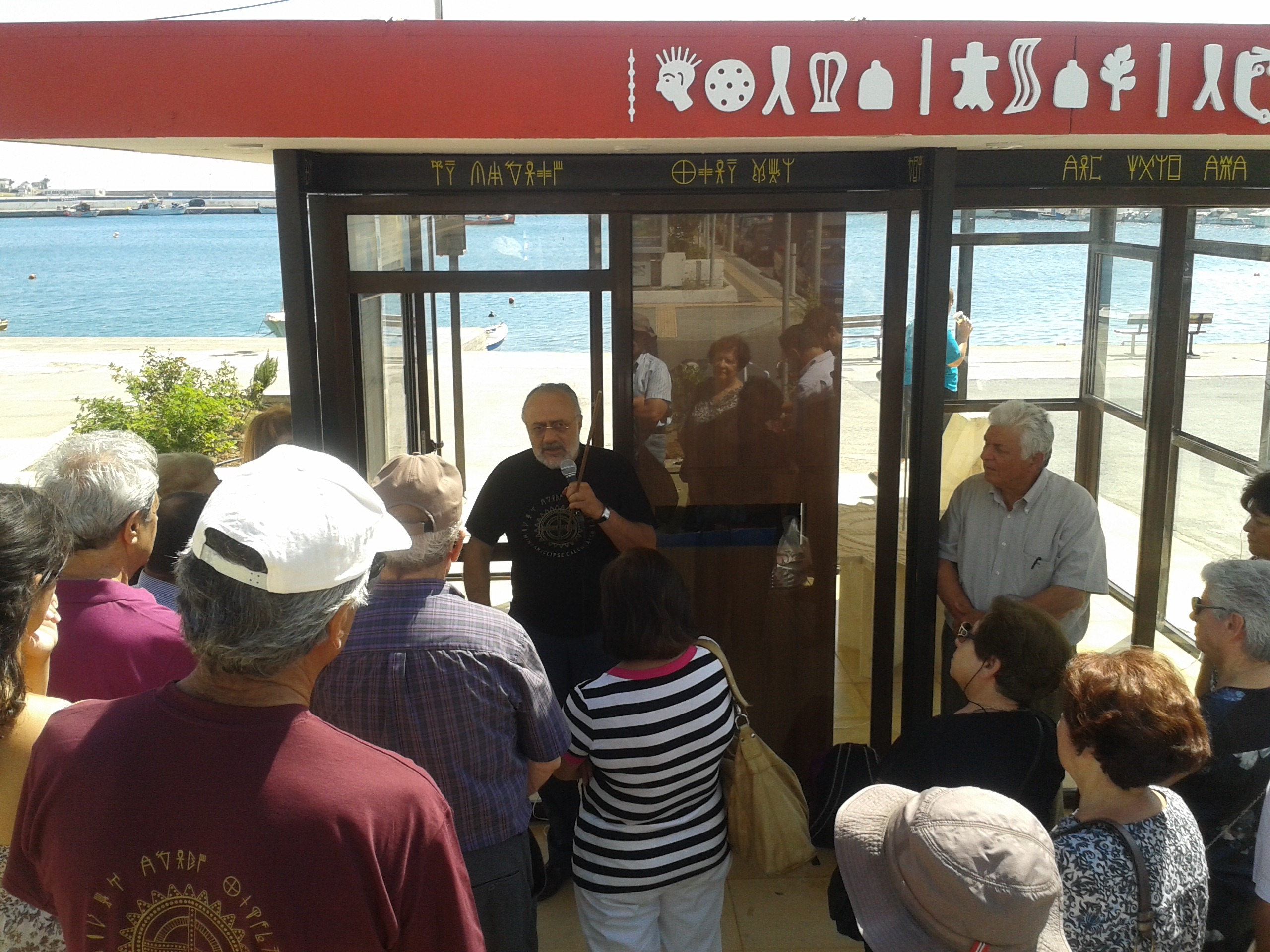 Στο περίπτερο δεσπόζει ένα λαξευμένο αντίγραφο σε πέτρα της λίθινης μινωικής μήτρας από το Παλαίκαστρο Σητείας, που θεωρείται ως ο πρώτος αναλογικός υπολογιστής στην ιστορία της ανθρωπότητας.