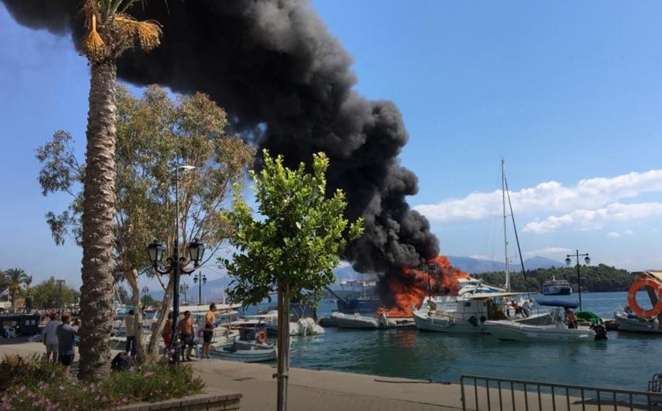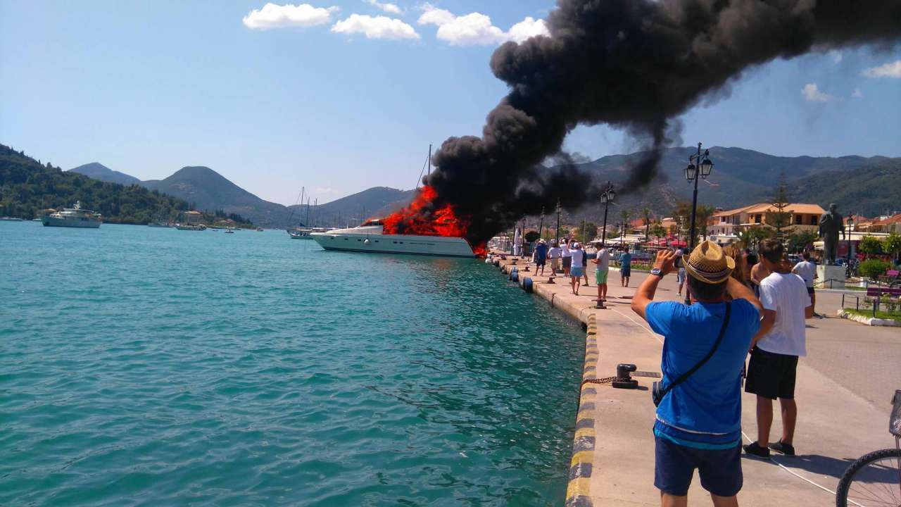 Φωτιά εκδηλώθηκε σε θαλαμηγό στο Νυδρί της Λευκάδας και συγκεκριμένα μέσα στο λιμάνι.
