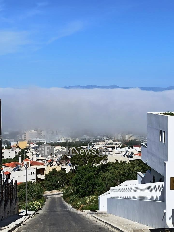 Ασυνήθιστα θερμός και υγρός αέρας που ήρθε σε επαφή με την ψυχρή θάλασσα και πλησίασε στην ακτή προκάλεσε τη σπάνια “ομίχλη μεταφοράς” που τύλιξε τα βόρεια παράλια των Χανίων.