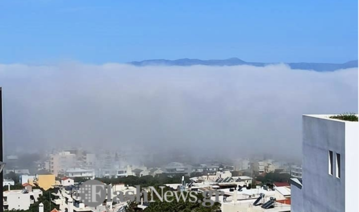 Ασυνήθιστα θερμός και υγρός αέρας που ήρθε σε επαφή με την ψυχρή θάλασσα και πλησίασε στην ακτή προκάλεσε τη σπάνια “ομίχλη μεταφοράς” που τύλιξε τα βόρεια παράλια των Χανίων.