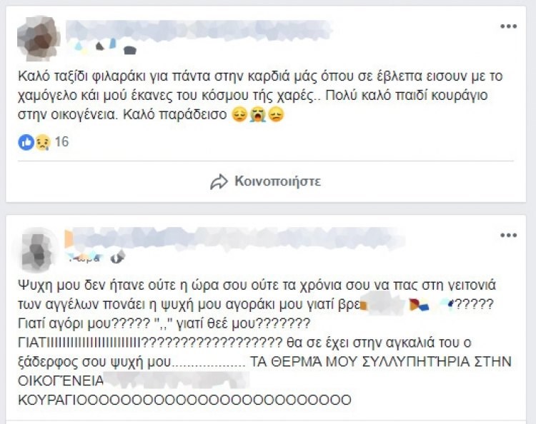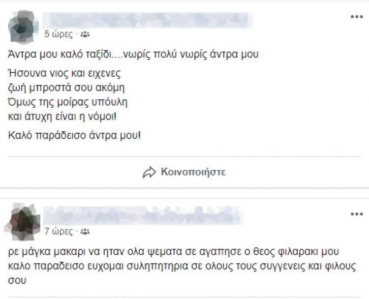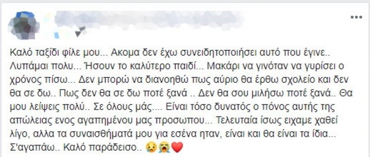 Φίλοι του θα έφευγαν νωρίτερα για το σπίτι προκειμένου να σκεπάσουν το φέρετρο με τη σημαία της αγαπημένης του ομάδας, του Ολυμπιακού. Μαθητές αναφέρουν ότι τις προηγούμενες ημέρες ο 17χρονος Μάνος εξέφρασε αρνητικές σκέψεις. “Θα βρεθούμε την Παρασκευή για καφέ ενόψει της παρέλασης” του έλεγαν συμμαθητές του. “Αν ζω μέχρι τότε” φέρεται να απάντησε εκείνος.Τη θλίψη τους εκφράζουν φίλοι και συμμαθητές μέσω των μηνυμάτων στα social media: