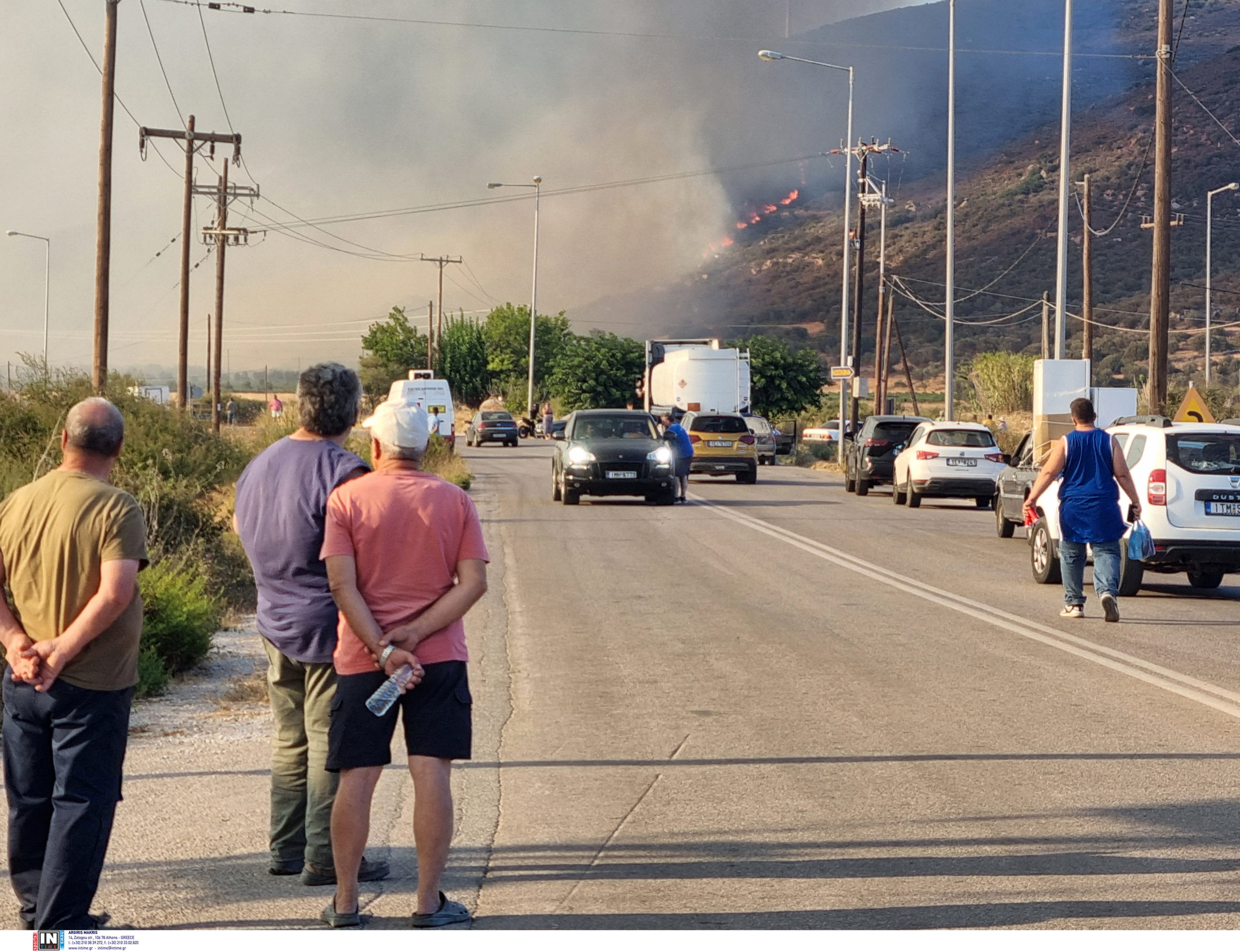 Αυτή τη στιγμή το κυρίως μέτωπο της πυρκαγιάς βρίσκεται εσωτερικά του τριγώνου που σχηματίζουν οι οικισμοί Πετριές, Κριέζα και Αλώνια».