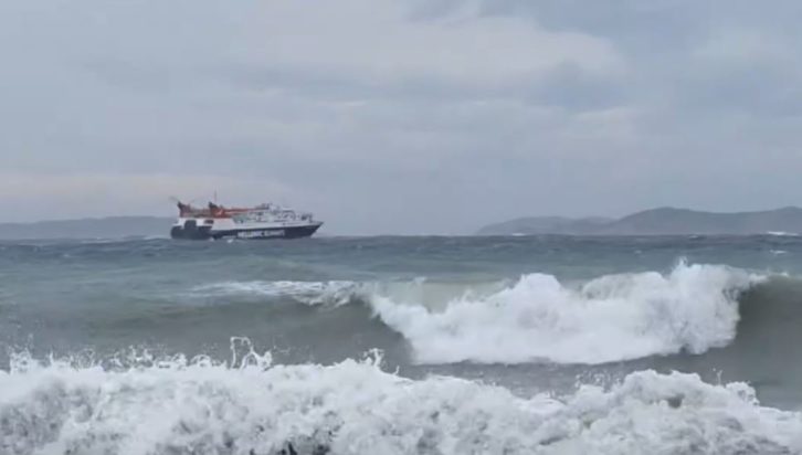 Το πλοίο φαίνεται να παλεύει με τα κύματα έξω από το λιμάνι του νησιού. Να υπενθυμίσουμε πως αύριο λόγω των καιρικών συνθηκών δεν θα πραγματοποιηθούν τα δρομολόγια και των δύο πλοίων της γραμμής.