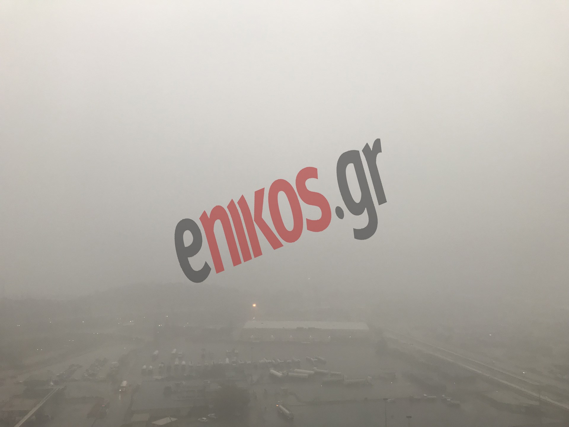 Όπως φαίνεται στις φωτογραφίες που μας έστειλε αναγνώστης του enikos.gr από τον Ασπρόπυργο, πυκνά σύννεφα έχουν σκεπάσει τον ουρανό ενώ η ορατότητα είναι περιορισμένη.