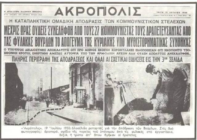 Το πρωτοσέλιδο της εφημερίδας «Ακρόπολις», στις 19 Ιουλίου 1955Σύμφωνα με το άρθρο, το οικοδομικό συγκρότημα λεγόταν ότι ανήκε στην οικογένεια του πρέσβεως και κατόπιν υπουργού Εξωτερικών και πρωθυπουργού, του Παναγιώτη Πιπινέλη, φίλου, συνεργάτη και υποτακτικού της βασιλικής οικογενείας και τελικώς, της χούντας. Το κτίριο αυτό πριν από τον πόλεμο νοικιαζόταν σε κυρίες, οι οποίες στα μικρά δωμάτια που κατόπιν έγιναν κελιά φυλακής, ασκούσαν το αρχαιότερο των επαγγελμάτων.