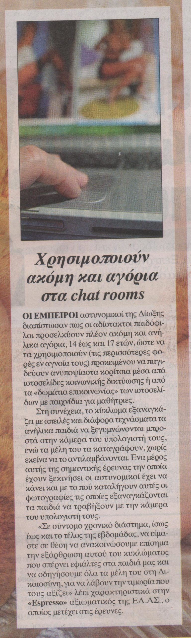 Όπως αναφέρει η Espresso, η Δίωξη Ηλεκτρονικού Εγκλήματος, διαπίστωσε ότι κύκλωμα παιδόφιλων χρησιμοποιεί μικρά παιδιά σαν δόλωμα για τους δόλιους σκοπούς του.