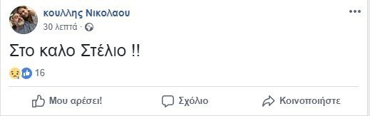 Ο Κούλλης Νικολάου αποχαιρέτησε τον ηθοποιό με μήνυμά του στο facebook στο οποίο έγραψε: “Στο καλό Στέλιο”.