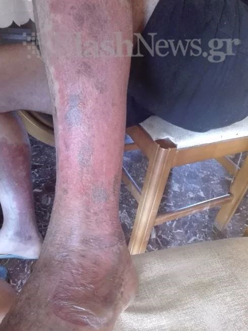 - Θερμικό έγκαυμα 1ου βαθμού σε δεξιό και αριστερό αντιβράχιο και δεξιάς κνήμης κυκλοτερώς