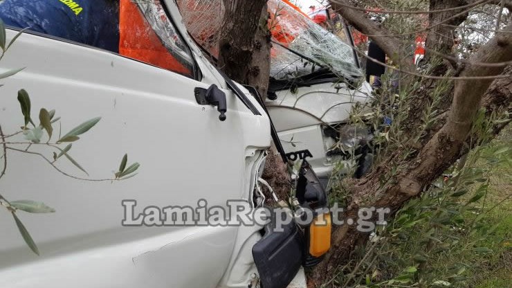 Το λευκό βαν του 77χρονου “πέταξε” και αφού διένυσε απόσταση αρκετών μέτρων πέρασε ανάμεσα από άλλα δέντρα και καρφώθηκε σε μια ελιά.