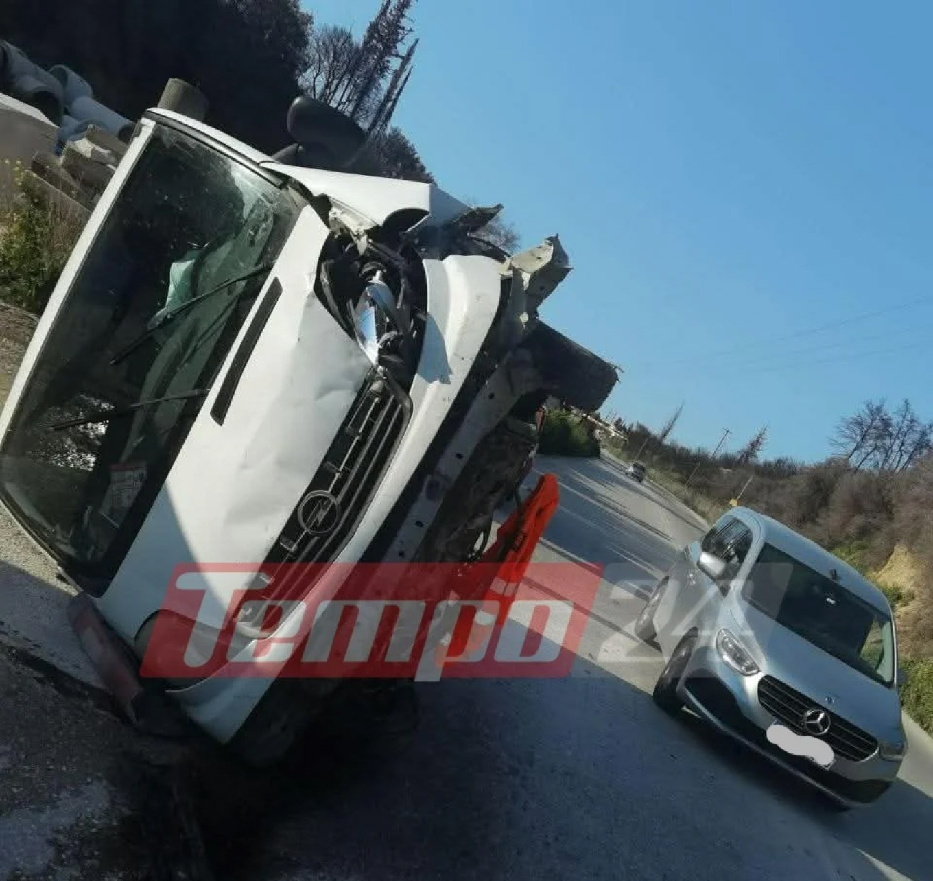 Το όχημα, σύμφωνα με τις πρώτες πληροφορίες, αναποδογύρισε και κατέληξε σε πλάγια θέση στη μέση του δρόμου. Παρά τη σφοδρότητα του περιστατικού, ο οδηγός δεν τραυματίστηκε και κατάφερε να βγει μόνος του από το βανάκι.