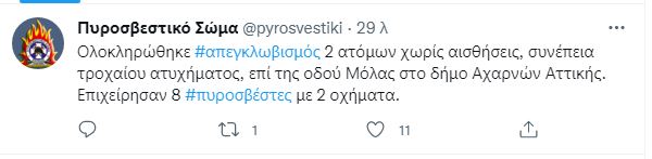 Σύμφωνα με πληροφορίες, στο όχημα επέβαιναν δύο άτομα τα οποία μεταφέρθηκαν χωρίς τις αισθήσεις τους στο ΚΑΤ, όπως αναφέρει και η Πυροσβεστική Υπηρεσία σε σχετική ανάρτηση.
