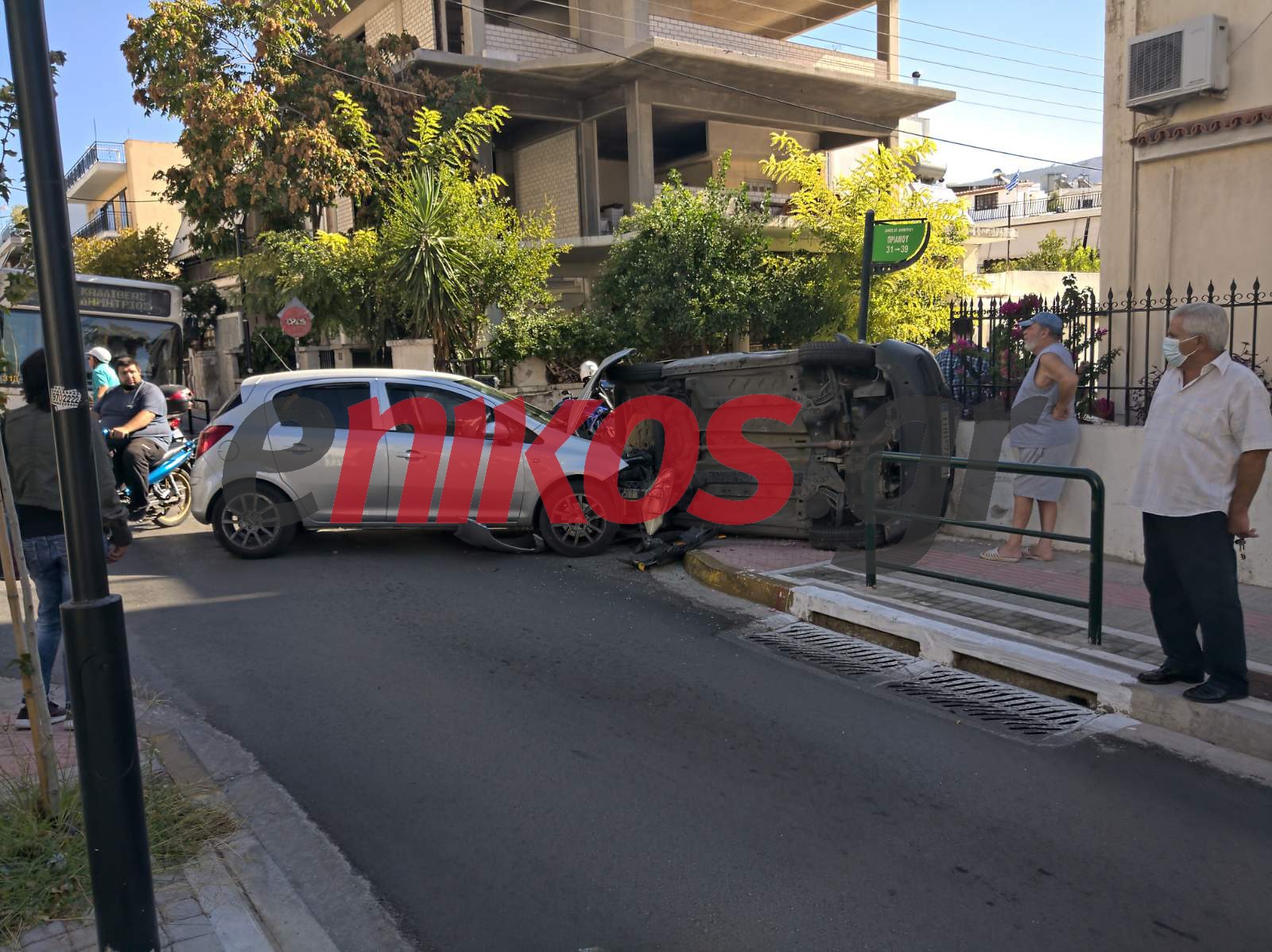 Σοβαρό τροχαίο σημειώθηκε στον Άγιο Δημήτριο Αττικής το πρωί της Τρίτης. Όπως βλέπετε στις φωτογραφίες που έστειλε αναγνώστης του enikos.gr, στο τροχαίο ενεπλάκησαν δύο αυτοκίνητα, ένα εκ των οποίων από τη σύγκρουση αναποδογύρισε και κατέληξε πάνω στο πεζοδρόμιο, μια ανάσα από την περίφραξη σπιτιού στην οδό Πριάμου.