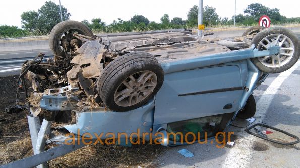 Ο οδηγός του αυτοκινήτου έχασε τον έλεγχο του οχήματος το οποίο προσέκρουσε με δύναμη στις προστατευτικές μπάρες με αποτέλεσμα να ανατραπεί.
