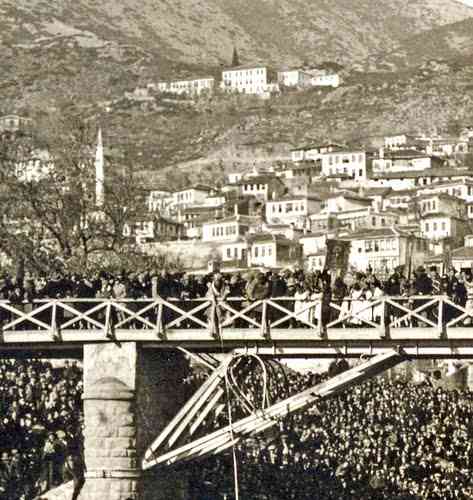 Μια πολύ μαζική κοινωνική συνάθροιση με την ευκαιρία μιας θρησκευτικής εορτής, που λάμβανε χώρα ακριβώς στο ίδιο σημείο, ήδη από το 1900. Στην πρώτη φωτογραφία είναι ο ο εορτασμός των Θεοφανείων το 1900 στην πρώτη φάση της κατασκευής της γέφυρας, όπως και στη δεύτερη φωτογραφία εμφανίζεται ένας εορτασμός των Φώτων λίγα χρόνια αργότερα.