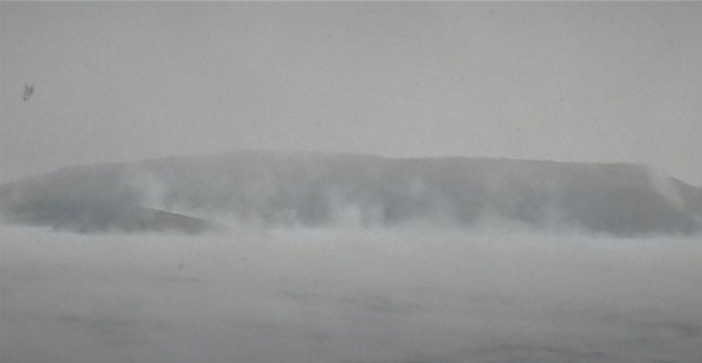 Όταν η θερμοκρασία της θάλασσας έχει μεγάλη απόκλιση από τη θερμοκρασία του περιβάλλοντος, τότε οι υδρατμοί από το νερό ανεβαίνουν πάνω από την επιφάνεια και… βράζουν. Η θάλασσα είχε θερμοκρασία από 12-13 βαθμούς Κελσίου ενώ η ατμόσφαιρα από 1-3 βαθμούς και έτσι δημιουργήθηκαν υδρατμοί που ανέβηκαν στον αέρα. Τα ερημονήσια των Κυκλάδων φαίνεται πως αναδύονται μέσα από τη θάλασσα ενώ τα κύματα είναι τεράστια.