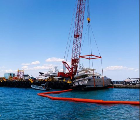 Πραγματοποιήθηκε η ανέλκυση της πολυτελούς θαλαμηγού, η οποία λόγω των ισχυρών ανέμων που επικρατούσαν στις Σπέτσες, τη Μεγάλη Παρασκευή, βγήκε στα ρηχά και προσέκρουσε στο λιμάνι.