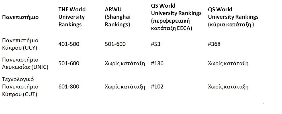 Η κατάταξη των μεγαλύτερων κυπριακών πανεπιστημίων σε αυτές τις πανεπιστημιακές κατατάξεις για το 2023: