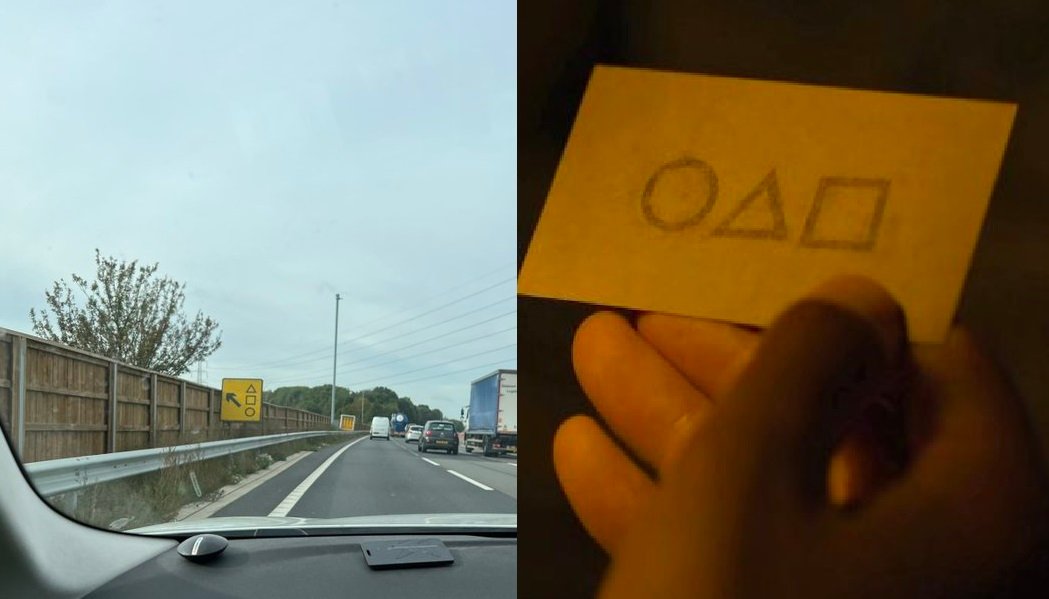Οι διερχόμενοι οδηγοί βλέπουν ένα τρίγωνο, ένα τετράγωνο και έναν κύκλο μαζί με ένα βέλος που υποδεικνύει την επόμενη έξοδο. Αρκετοί άρχισαν να πιστεύουν ότι αυτή η πινακίδα οδηγεί σε ένα πραγματικό Squid Game.