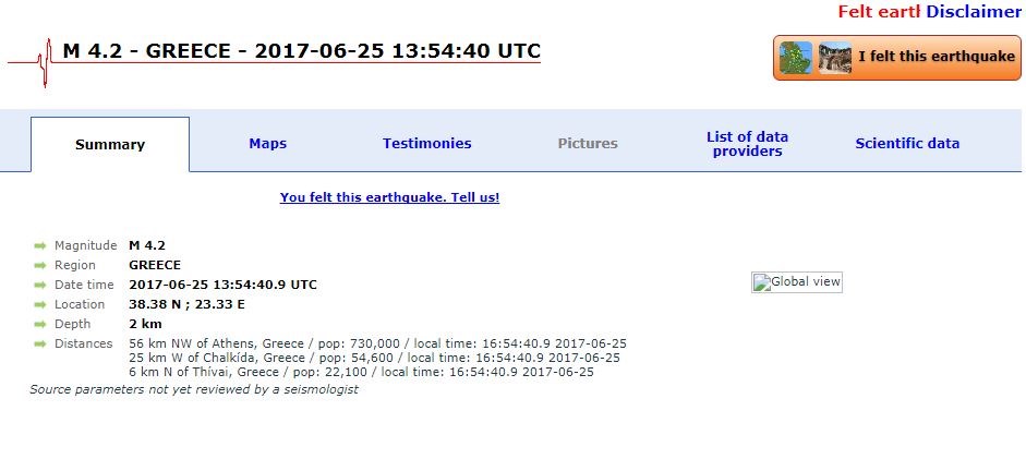 Σεισμός αισθητός στην Αττική σημειώθηκε πριν από λίγη ώρα. Σύμφωνα με το Ευρωμεσογειακό Ινστιτούτο, ο σεισμός ήταν 4,2 Ρίχτερ. Το επίκεντρό του ήταν η ευρύτερη περιοχή της λίμνης Υλίκης και το εστιακό του βάθος υπολογίζεται από 5 έως 10 χιλιόμετρα.