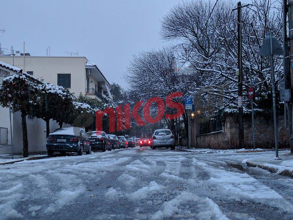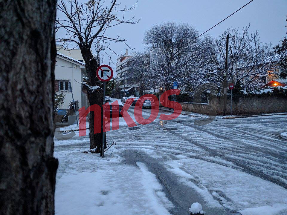 Στα “λευκά” και το Μαρούσι μετά τη χιονόπτωση που ξεκίνησε από τα ξημερώματα.