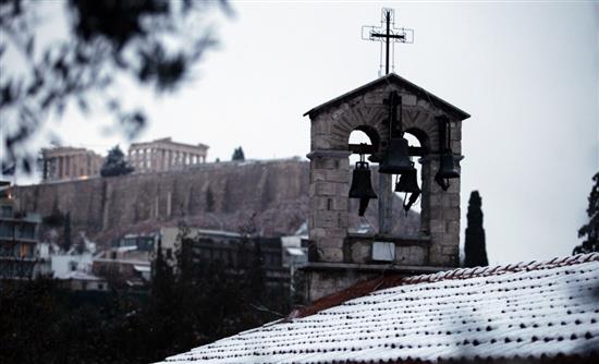 Χιονίζει από τα ξημερώματα και στο κέντρο της Αθήνας. Το χιόνι κάλυψε και τον λόφο του Λυκαβηττού όπως φαίνεται στη φωτογραφία που έστειλε αναγνώστης του enikos.gr.