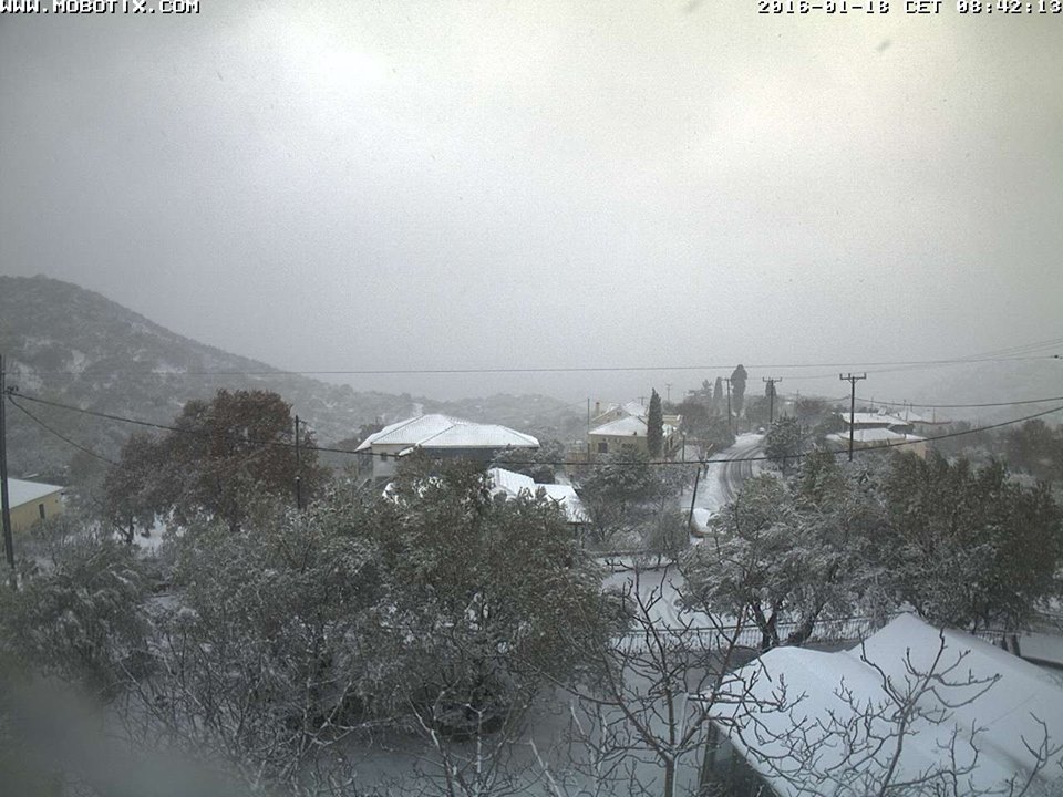 Πριν από λίγο ξεκίνησε να χιονίζει και στη Χίο στα χωριά της Αμανής βόρεια του νησιού, χωρίς όμως μέχρι τώρα προβλήματα.