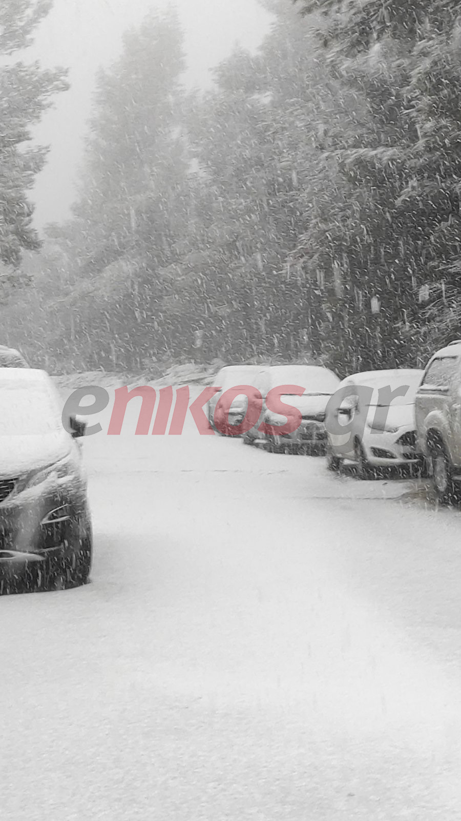Οι παρακάτω φωτογραφίες είναι από το πρωί της Κυριακής και όπως φαίνεται η χιονόπτωση ήταν πυκνή.