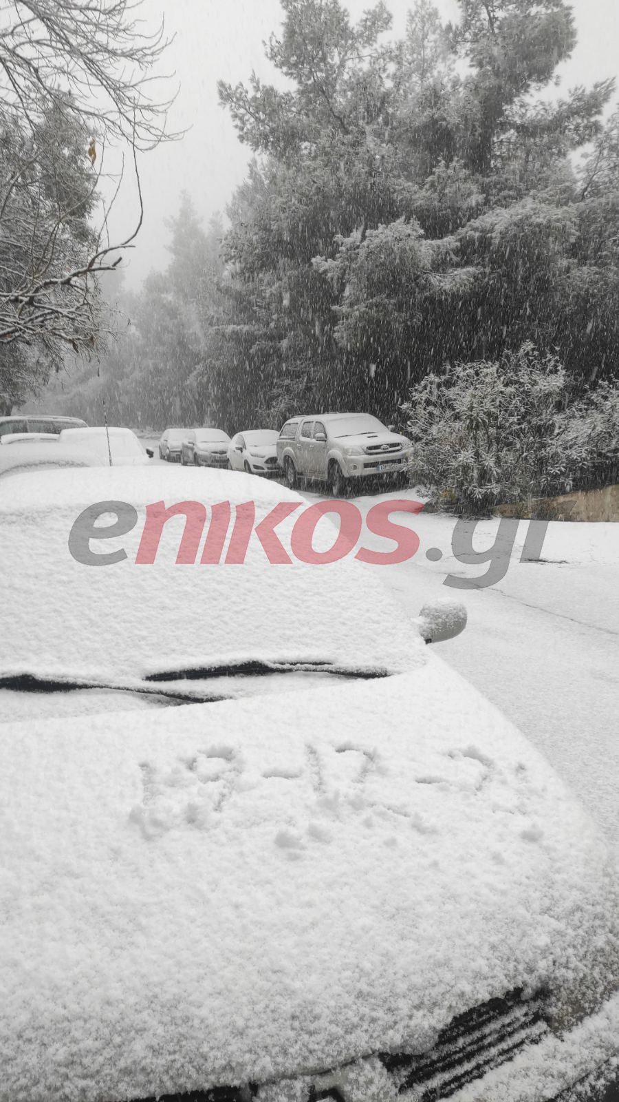 Μία από αυτές τις περιοχές είναι και ο Διόνυσος όπου μέχρι και σήμερα το πρωί έπεφτε χιόνι. Χαρακτηριστικές είναι οι εικόνες που έστειλαν αναγνώστες του enikos.gr από την περιοχή.